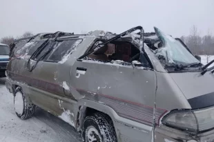На Сахалине зажало водителя перевернувшегося микроавтобуса