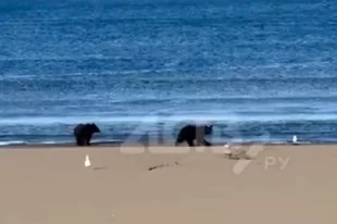 Два медведя вышли к сахалинцам, которые отдыхали на пляже