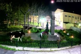 В Охе у памятника летчикам разгуливают коровы и вытаптывают посадки