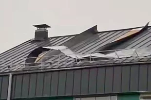 Ураган срывает кровлю с крыш домов в Северо-Курильске