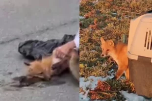 Сбитого машиной лисёнка с множественными переломами выходили на Сахалине
