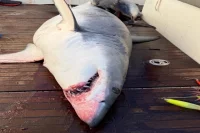 На Сахалине поймали огромного голубого тихоокеанского тунца. Вес гиганта составил 215 кг, а длина 2 м 36 см.