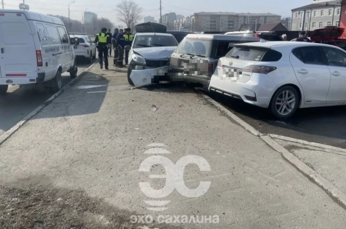 Массовое ДТП случилось 26 марта 2026 года в Южно-Сахалинске на Проспекте Мира — автомобиль врезался в три машины, припаркованные у торгово-делового центра «Альянс». Об этом сообщили в Telegram-канале «Эхо Сахалина».