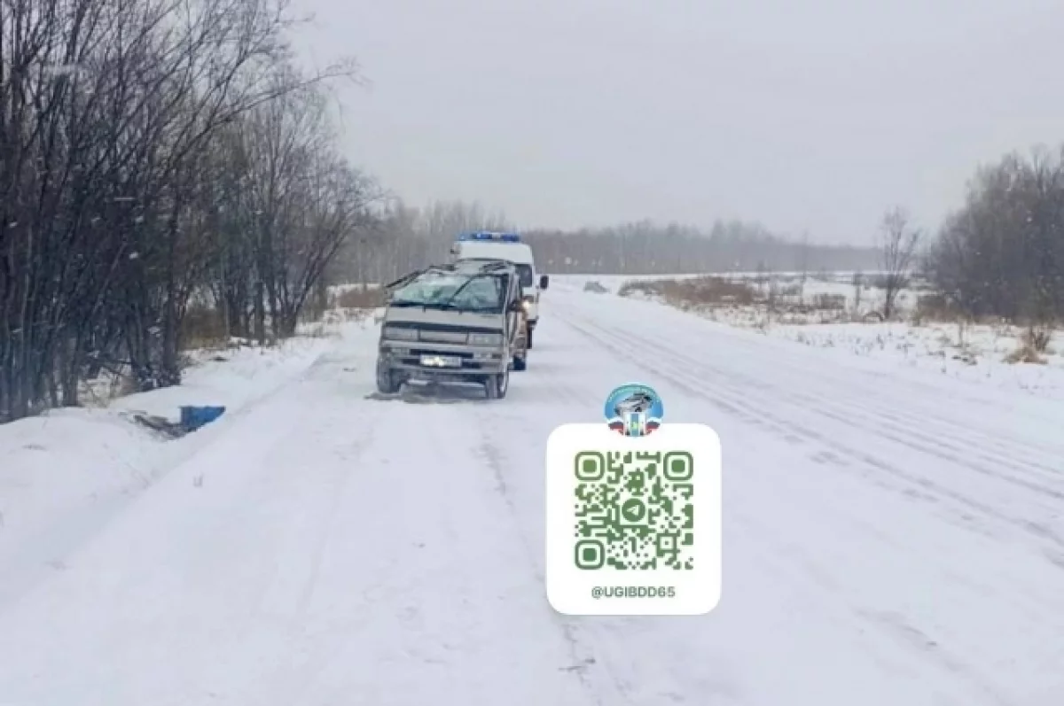 На Сахалине иномарка на скользкой дороге слетела в кювет