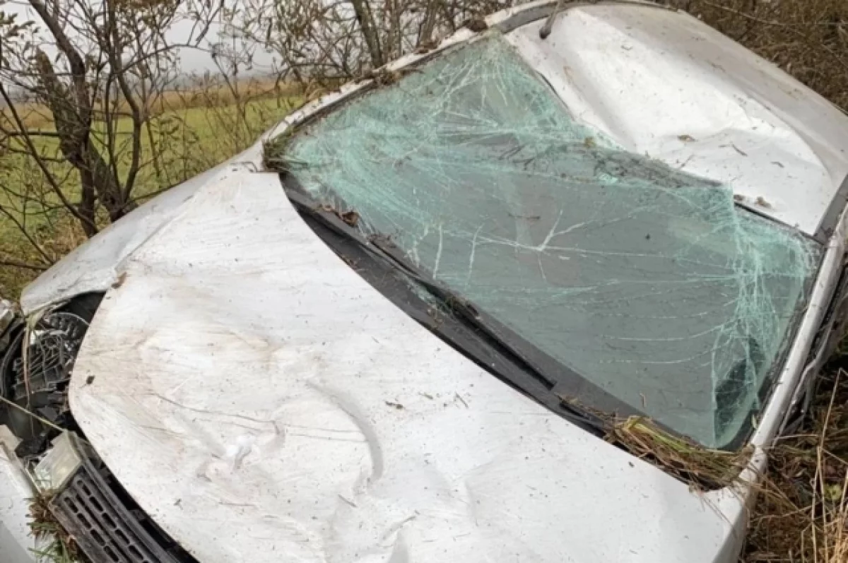 51-летний водитель на автомобиле «NISSAN WINGROAD» не справился с управлением, выехал на  обочину автодороги, наехал на дорожный знак, съехал в кювет и опрокинулся. Виновник автоаварии получил травмы.