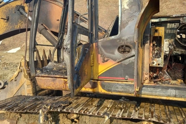 Экскаватор сгорел в селе Шебунино Невельского района 26 марта, фото спецтехники опубликовали в пресс-службе ПСС Сахалинской области.