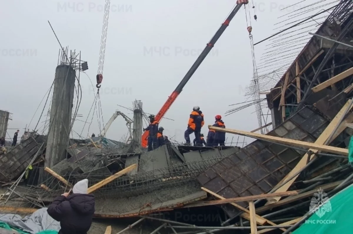Рабочие под завалами и бетоном. Кадры с места обрушения здания на Сахалине