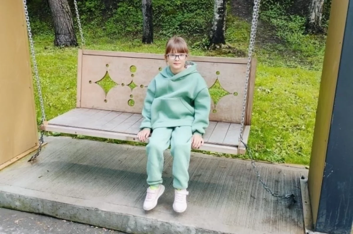 Девочке на вид около 11-12 лет, ее рост 134 см., она худощавого телосложения, волосы светло-русого цвета носит в хвосте на резинке. Также носит очки для зрения.