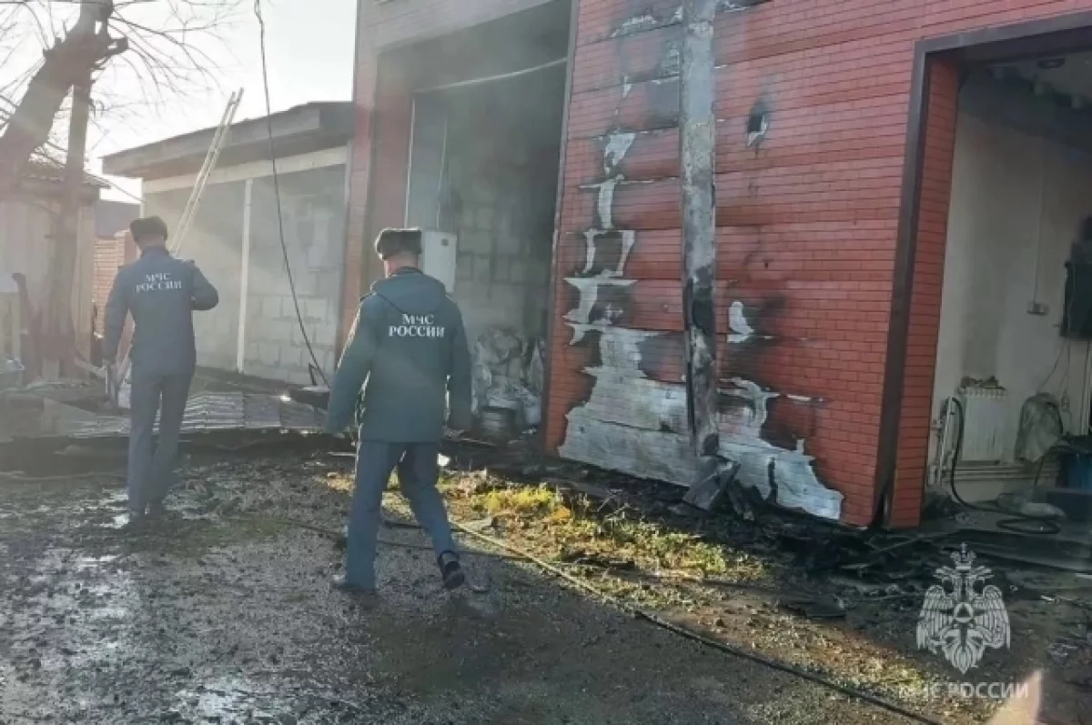На Сахалине от горевшего автомобиля пламя перекинулось на крышу гаража