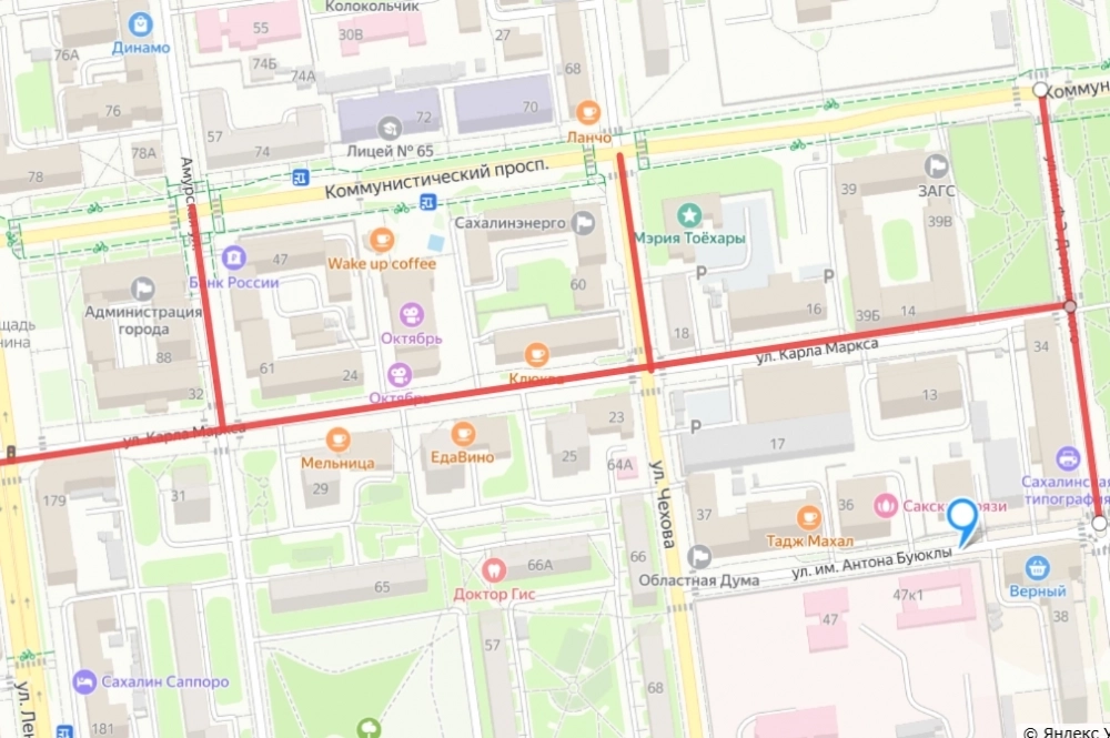 - на улице Карла Маркса от Дзержинского до Ленина;