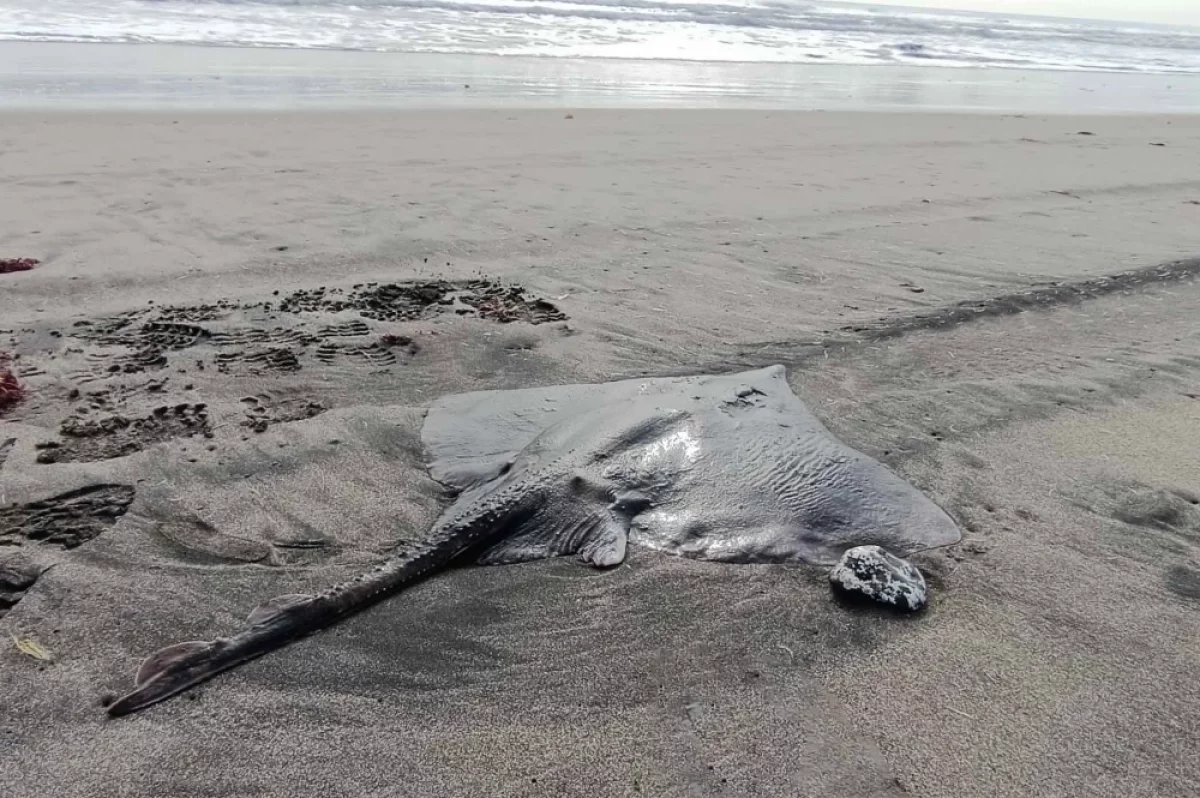 Крупного ромбовидного ската обнаружили на побережье острова Кунашир 16 марта. Его вынесло на берег, вероятно, из-за шторма.