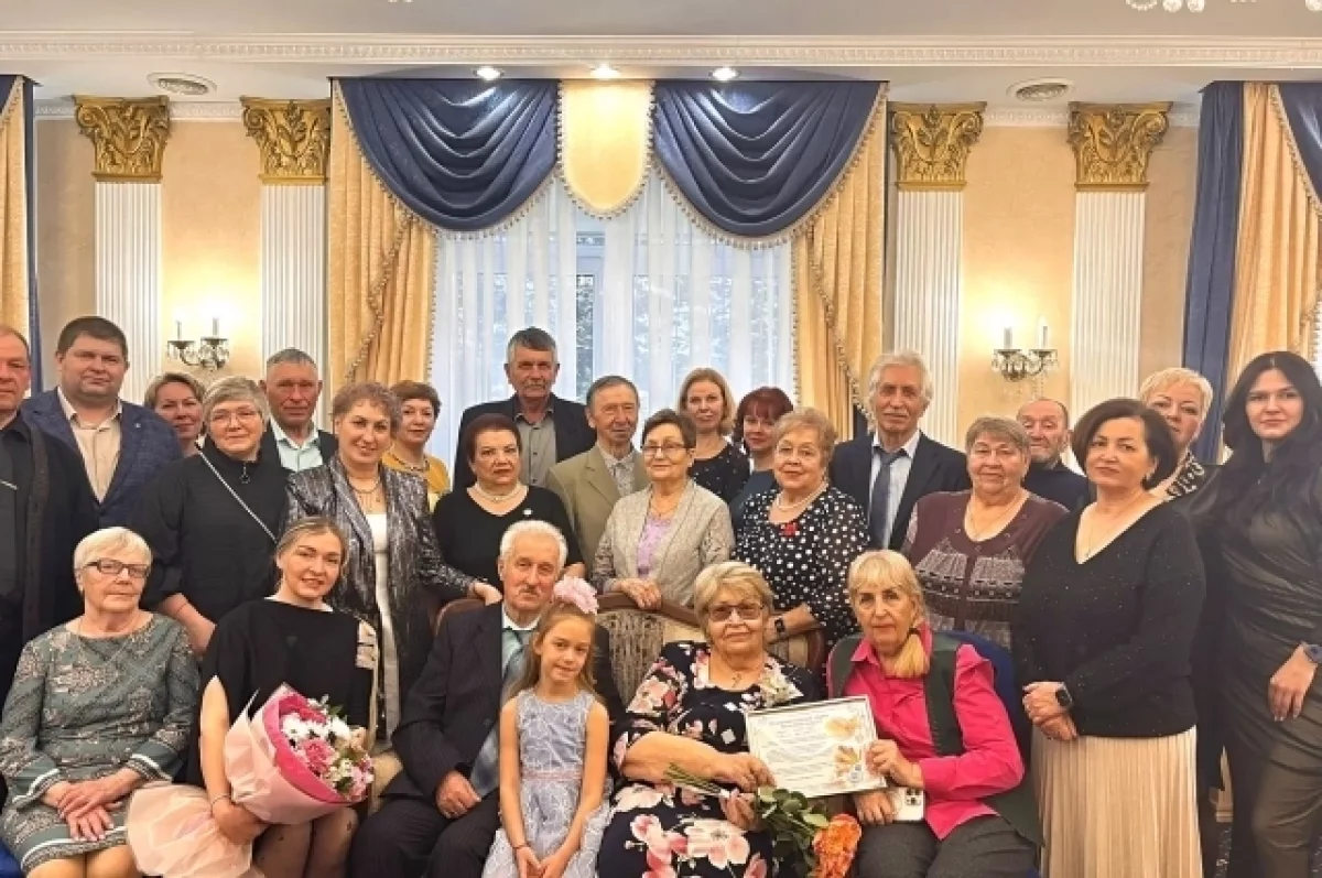 В зале бракосочетаний Южно-Сахалинская чествовали супругов Вадима и Людмилу Зайцевых, которые отметили 60 лет совместной жизни.