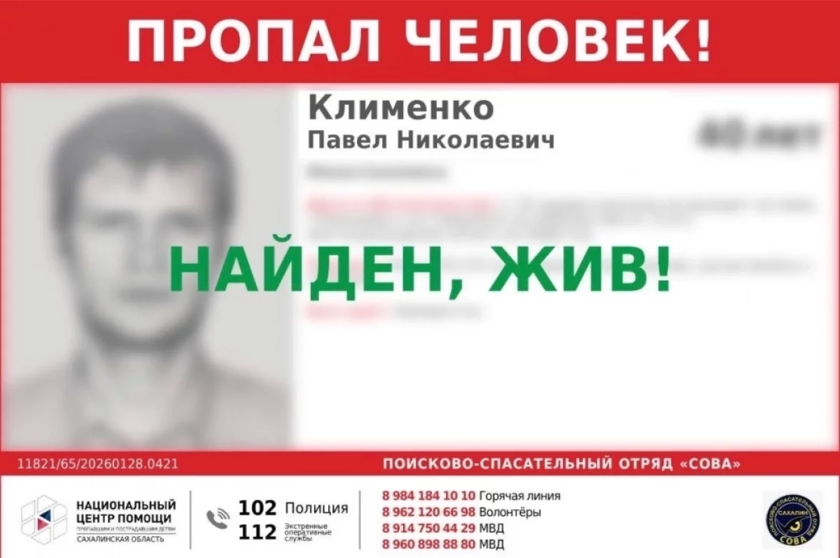 Найден пропавший 40-летний Павел Николаевич Клименко. Он приехал на остров в 2025 году, чтобы заработать.