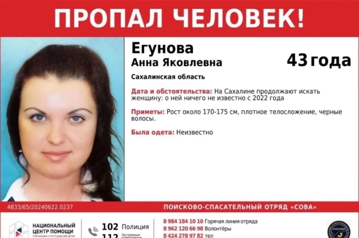 Родственники и полиция продолжают искать 43-летнюю Анну Егунову, которая не выходит на связь с близкими с 2022 года. Важна любая информация о женщине.