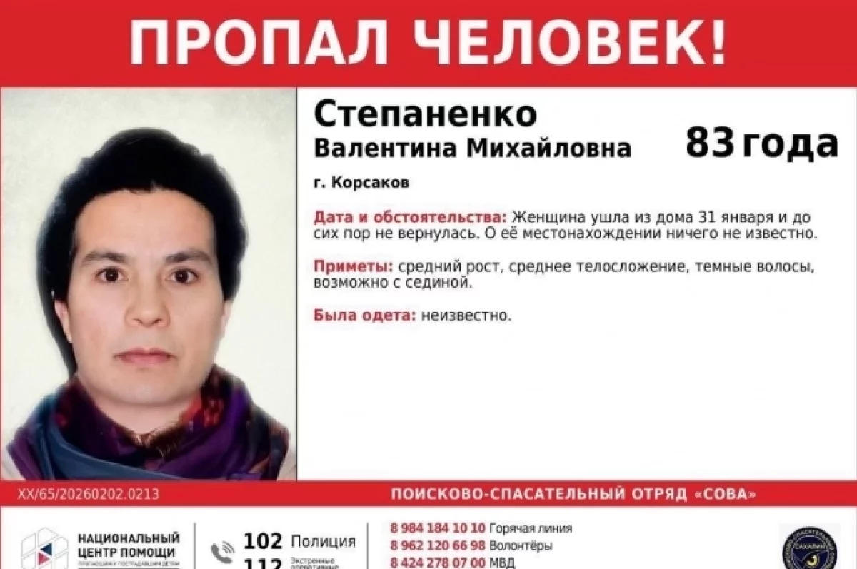 Если вы обладаете информацией, которая поможет найти пенсионерку, откликнитесь: 780-700, +7 914 762-20-46, +7 984 184-10-10, +7 962 120-66-98.
