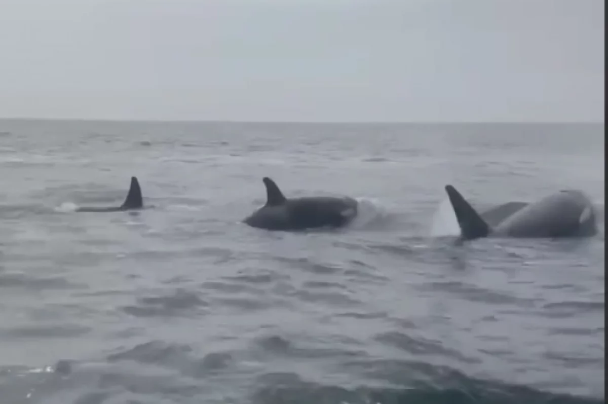 На Сахалине жители засняли косаток по пути к маяку Анива