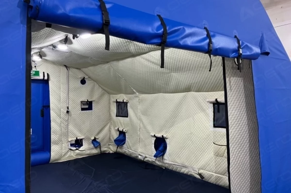 Пневмокаркасный модуль предполагается оперативно разворачивать на возвышенностях. В нём могут надёжно укрыться все эвакуированные, в том числе пожилые и маломобильные граждане, а также семьи с детьми. Модуль приобрели в муниципальную собственность по поручению губернатора Сахалинской области Валерия Лимаренко.