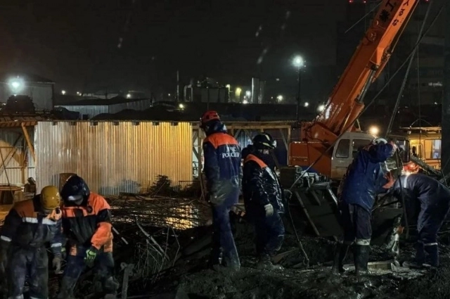 Изначально на месте разбирали рухнувшие конструкции 15 сотрудников МЧС, к месту трагедии стянули 5 единиц тяжелой техники. Работали две крановые установки, перемещающие крупные обломки металлоконструкций.