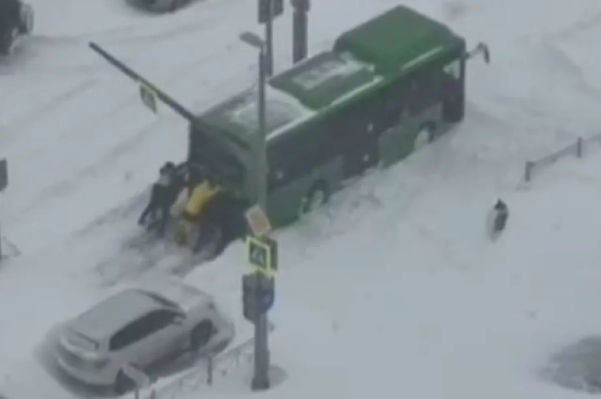 Жители ЖК «Уюн Парк» в Южно-Сахалинске 8 марта во время сильной метели помогли вытолкать застрявший автобус. Видео опубликовали в Telegram-канале «Эхо Сахалина».