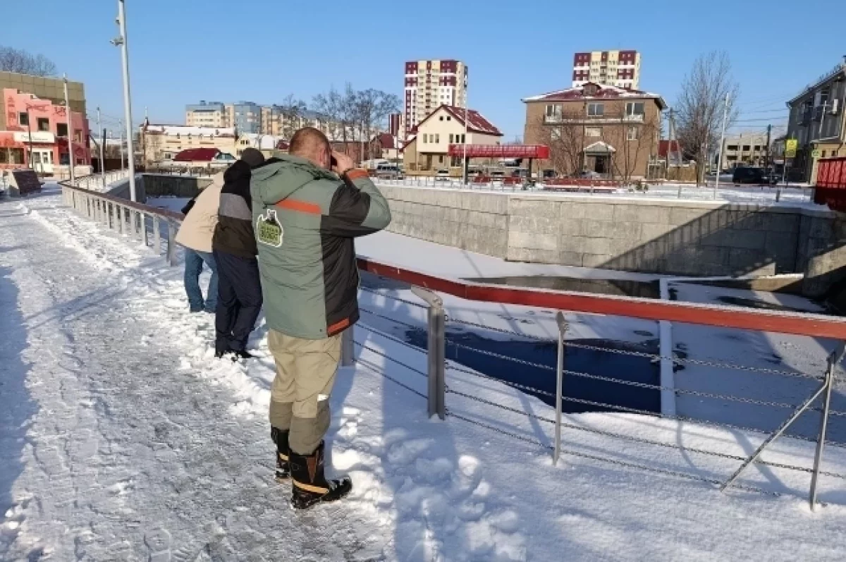 Сахалинцы обеспокоились судьбой утки, оставшейся зимовать на водоеме
