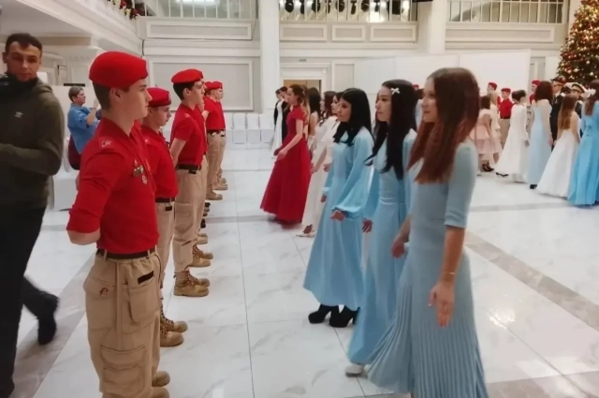 На мероприятие съехались юнармейцы, казаки, юные пограничники из 15 районов области. Перед выступлением ребята целый месяц готовились. Со школьниками занимались профессиональные преподаватели. В рамках бала островитяне написали письма для участников СВО.