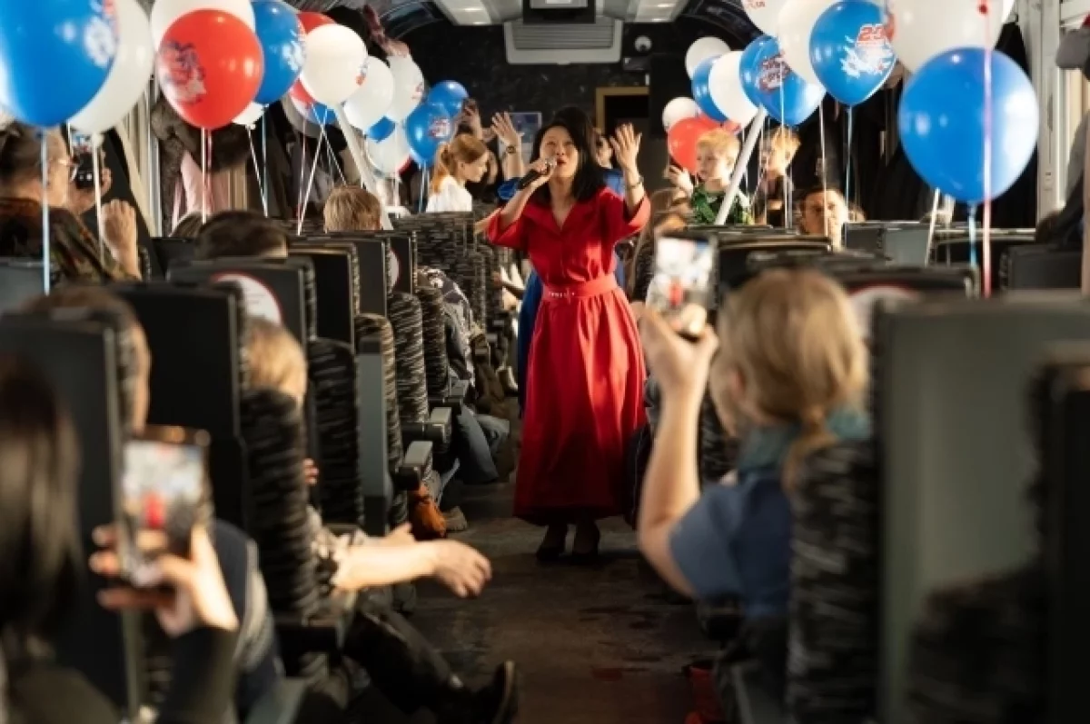 Этот праздничный экспресс курсировал по маршруту Южно-Сахалинск – Корсаков и обратно. В первом вагоне развернулась концертная площадка. Артисты Союза деятелей эстрадного искусства исполняли музыкальные номера. Второй вагон под названием  «Энергия Праздника», предложил пассажирам более интерактивный формат развлечений. Ведущий проводил тематическую викторину. Прошли также крафтовые игры. Также каждому пассажиру предложили написать «Письмо солдату».