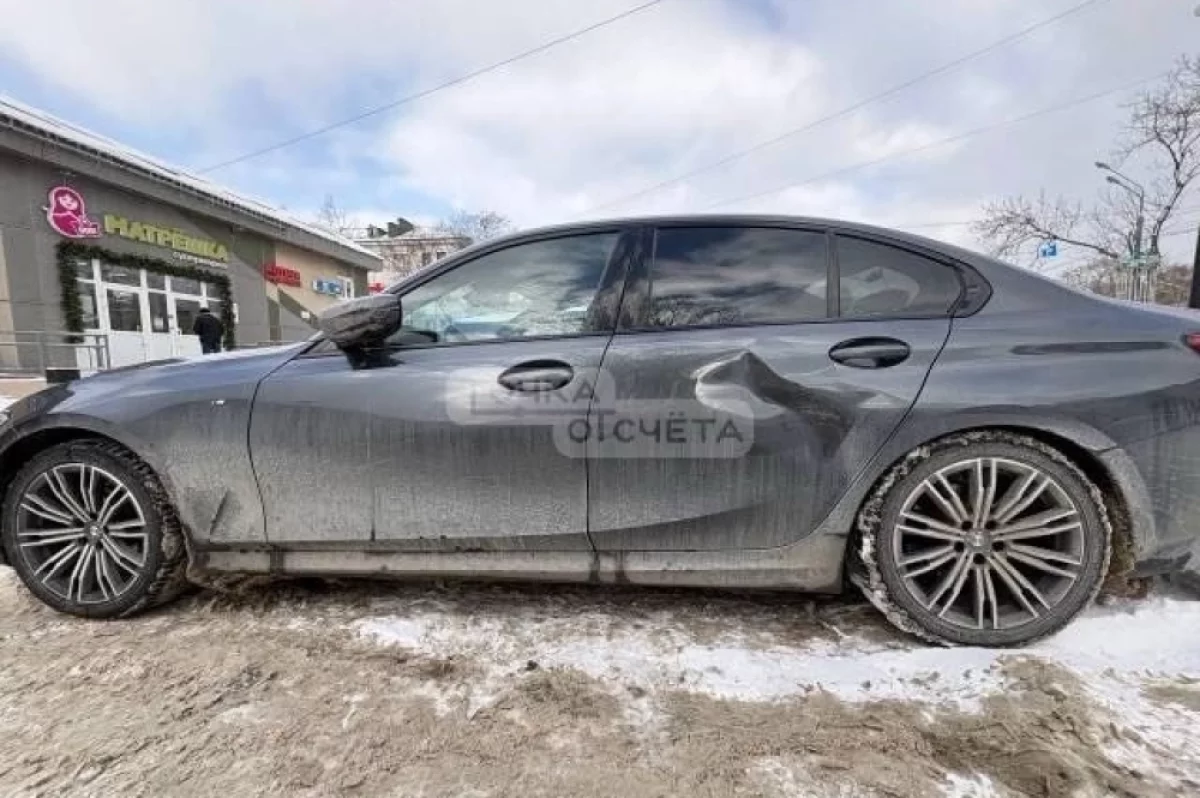 В результате инцидента на задней левой двери иномарки осталась заметная вмятина.