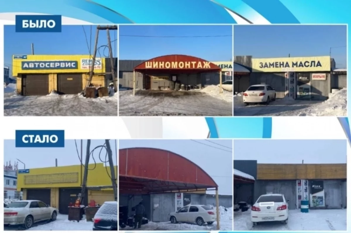 Вывески, не соответствующие дизайн-коду Южно-Сахалинска, пришлось убрать владельцам гаражей на первой линии улицы Железнодорожной, сообщили уполномоченном органе.