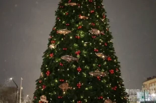 Елка, украшенная рыбами, появилась в Корсакове.