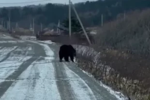 Большой медведь напугал жителей Южно-Курильска