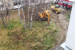 Тяжелая техника уничтожила насаждения между домами в Южно-Сахалинске