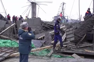 По предварительным данным, здание обрушилось из-за бетонной смеси, не выдержавшей перекрытия.